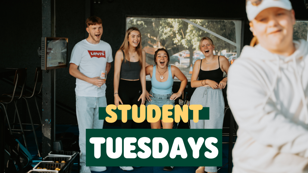 Take a break from your studies, grab you mates and come down to Good Time Golfin! Half price all your Favourite Activities and our Food & Beverage items!