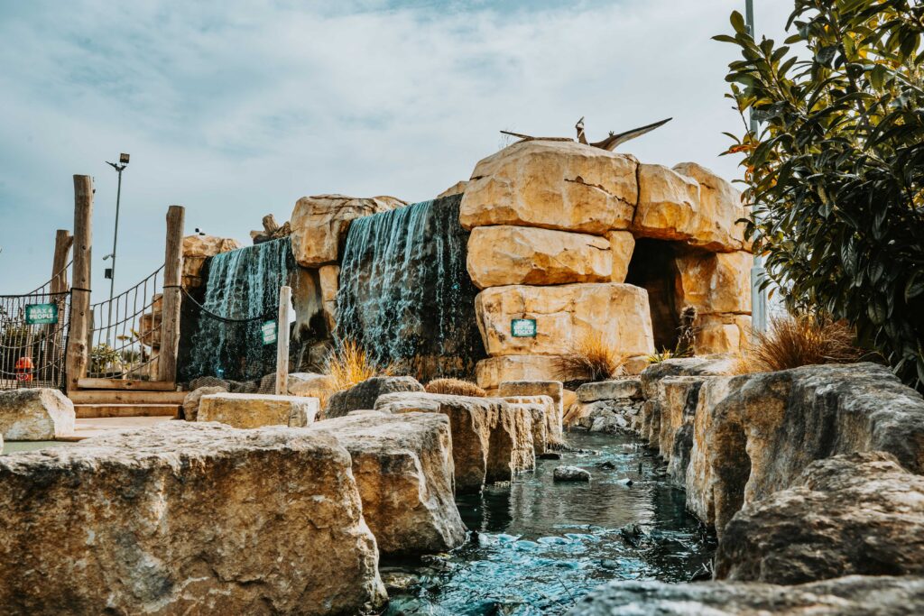 The Cascades Course leads you through the secret cave under the waterfall