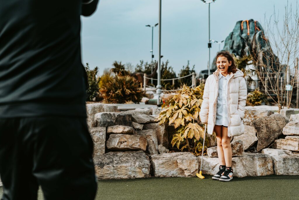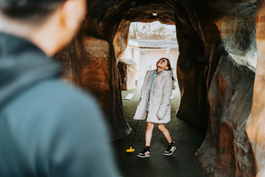 2 x incredibly themed 18 hole courses that will challenge your putting prowess. We provide all the equipment you need and we’re even buggy-stroller friendly. We have onsite parking and a café with indoor and outdoor seating for afterwards.